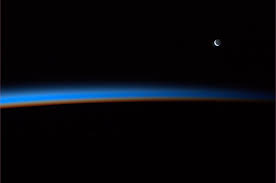 | A crescent moon, as seen from the ISS. (Image courtesy www.esa.int.) |